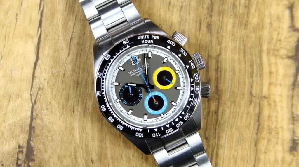 The Tactical Frog VS75 is a watch that makes its priorities clear from the outset. This is a solar-powered quartz chronograph built around function first, yet it manages to look genuinely distinctive in the process. At just over $140 before tax, it combines stainless-steel construction, sapphire crystal, ceramic bezel insert, and 200 meters of water resistance—specifications that already place it firmly in the serious tool-watch category. If you’re budgeting around the same amount, there are a few noteworthy options we’ve already covered.