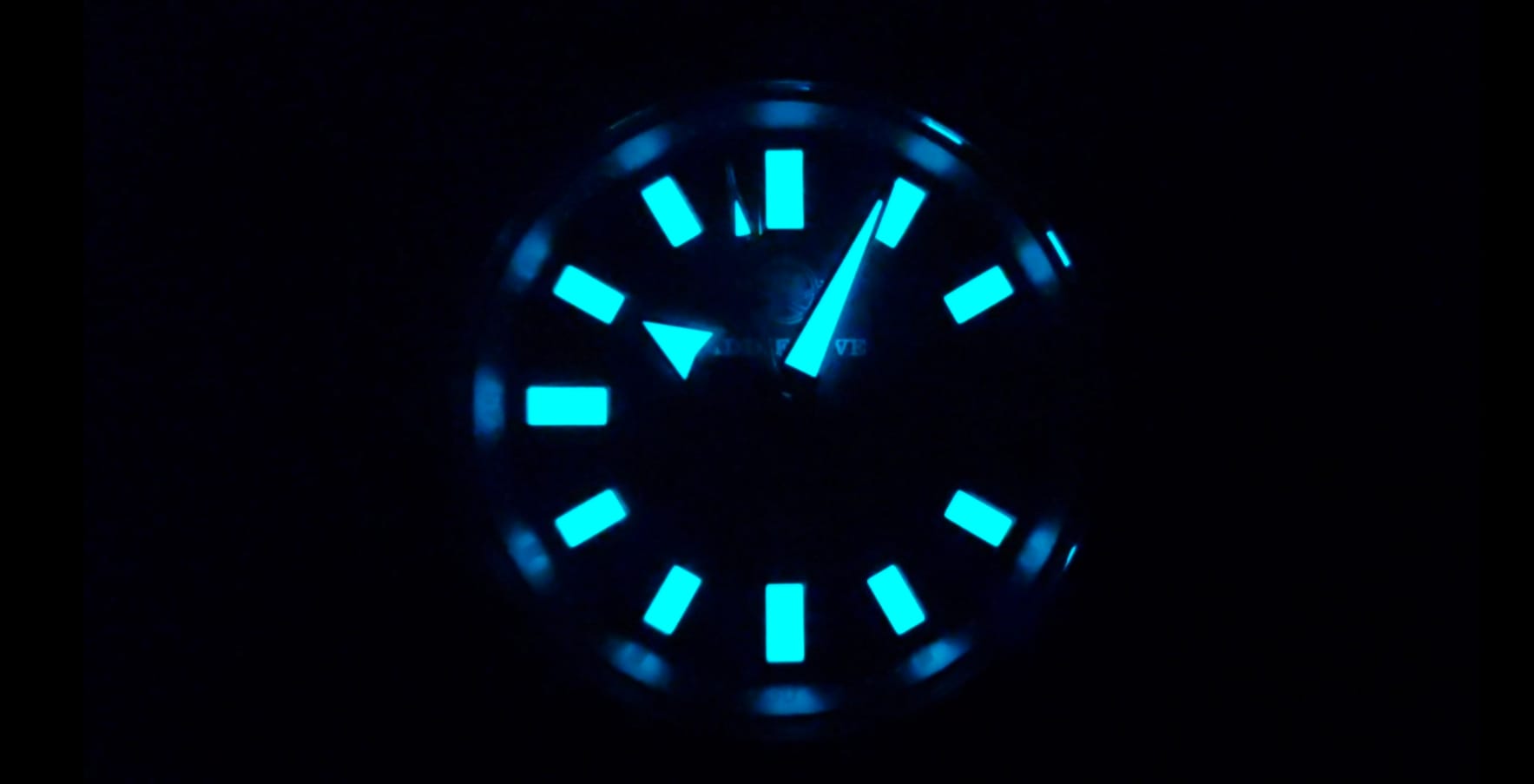 In darkness, the dial performs strongly. The hands and indices emit a bright blue glow typical of Addiesdive’s lume application. The lume is evenly applied, vivid, and long-lasting with no visible patchiness.