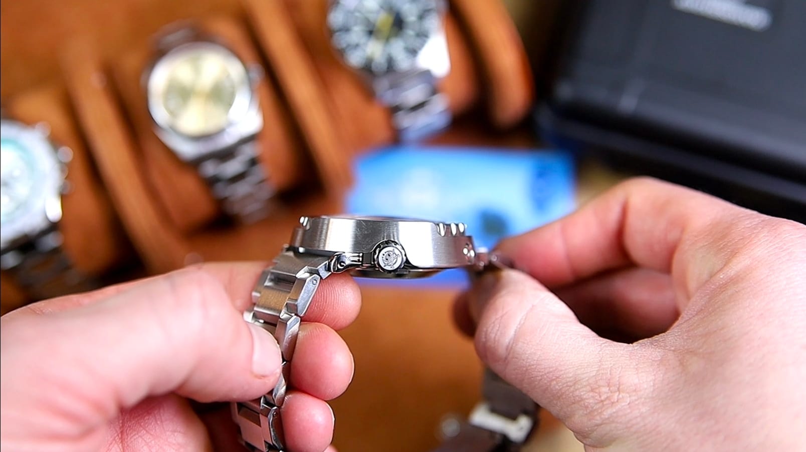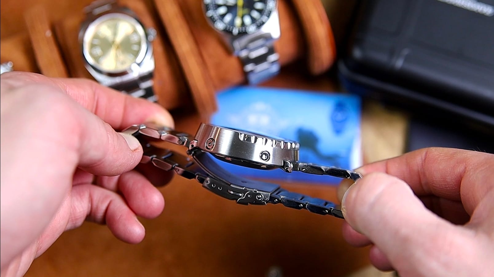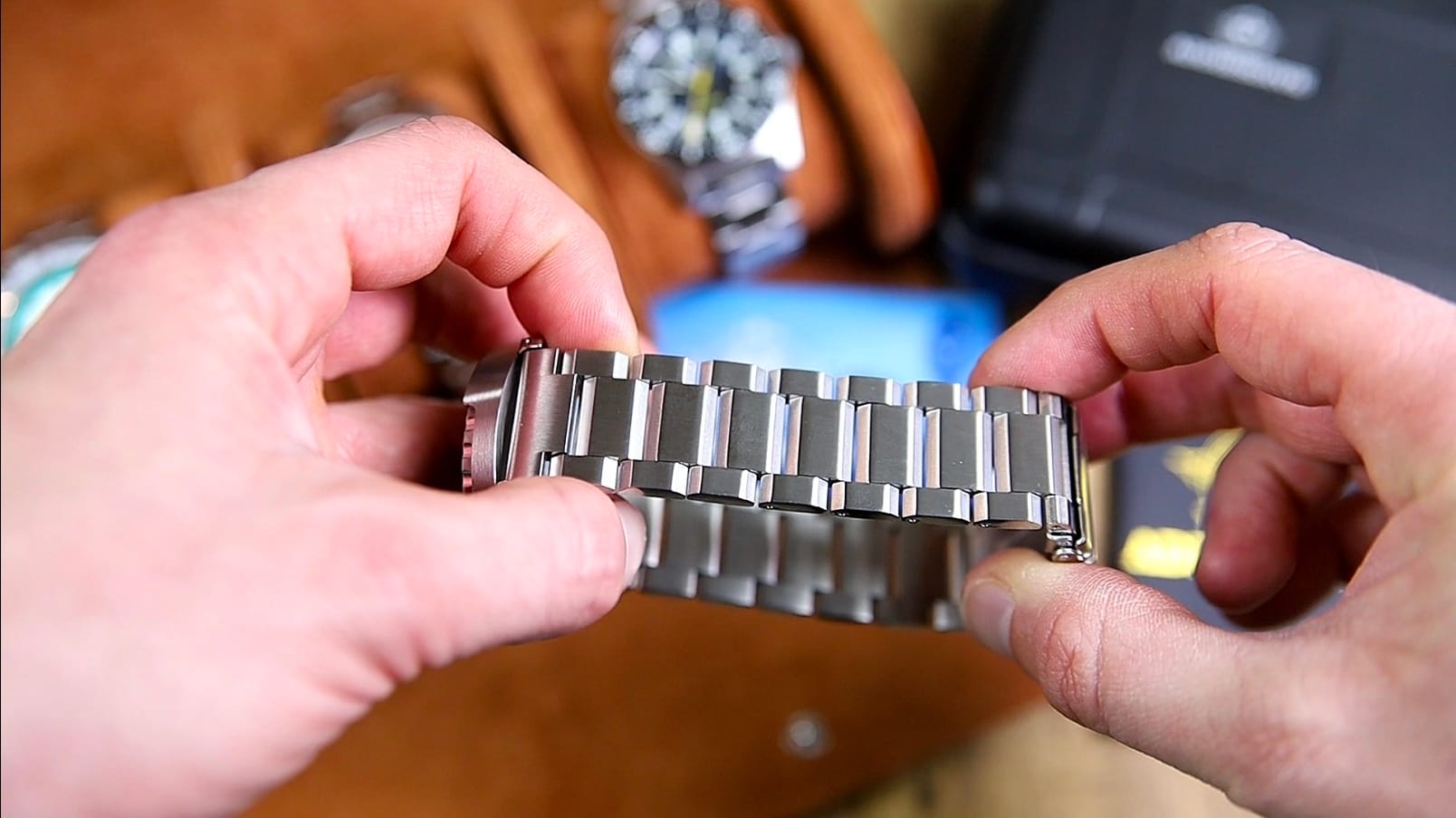 Construction relies on push pins rather than screw pins. The tolerances are not especially tight, resulting in some noticeable stretch and a bit of rattle when the bracelet is flexed. Articulation itself is smooth and fluid, with no stiffness in movement, which helps the watch sit comfortably despite its weight.