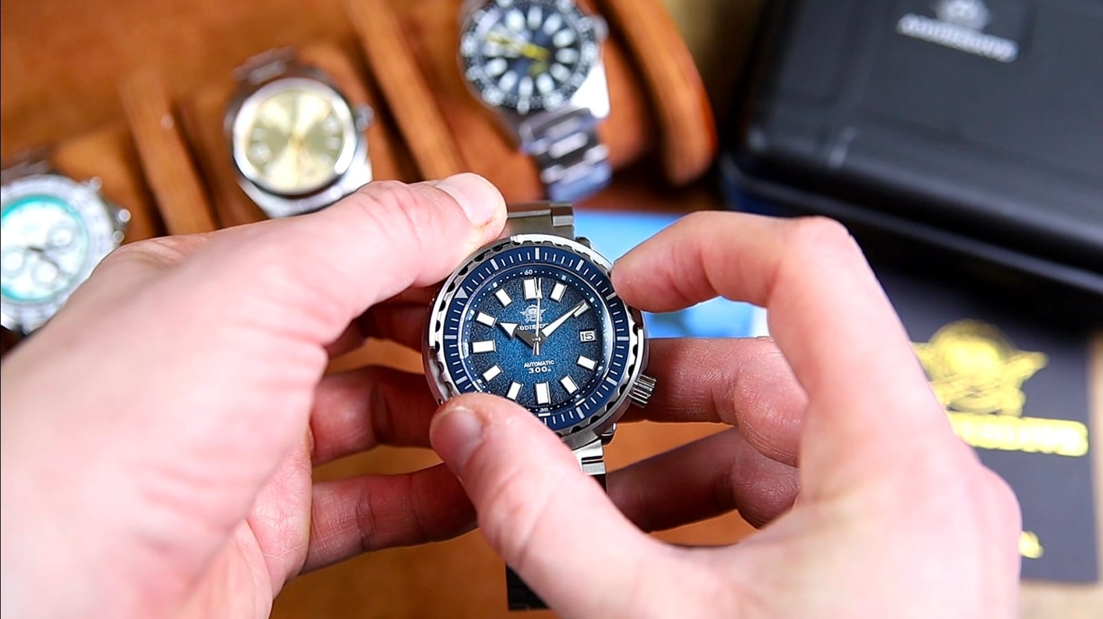 | Dial Variants | Blue gradient textured, caramel brown, forest green |