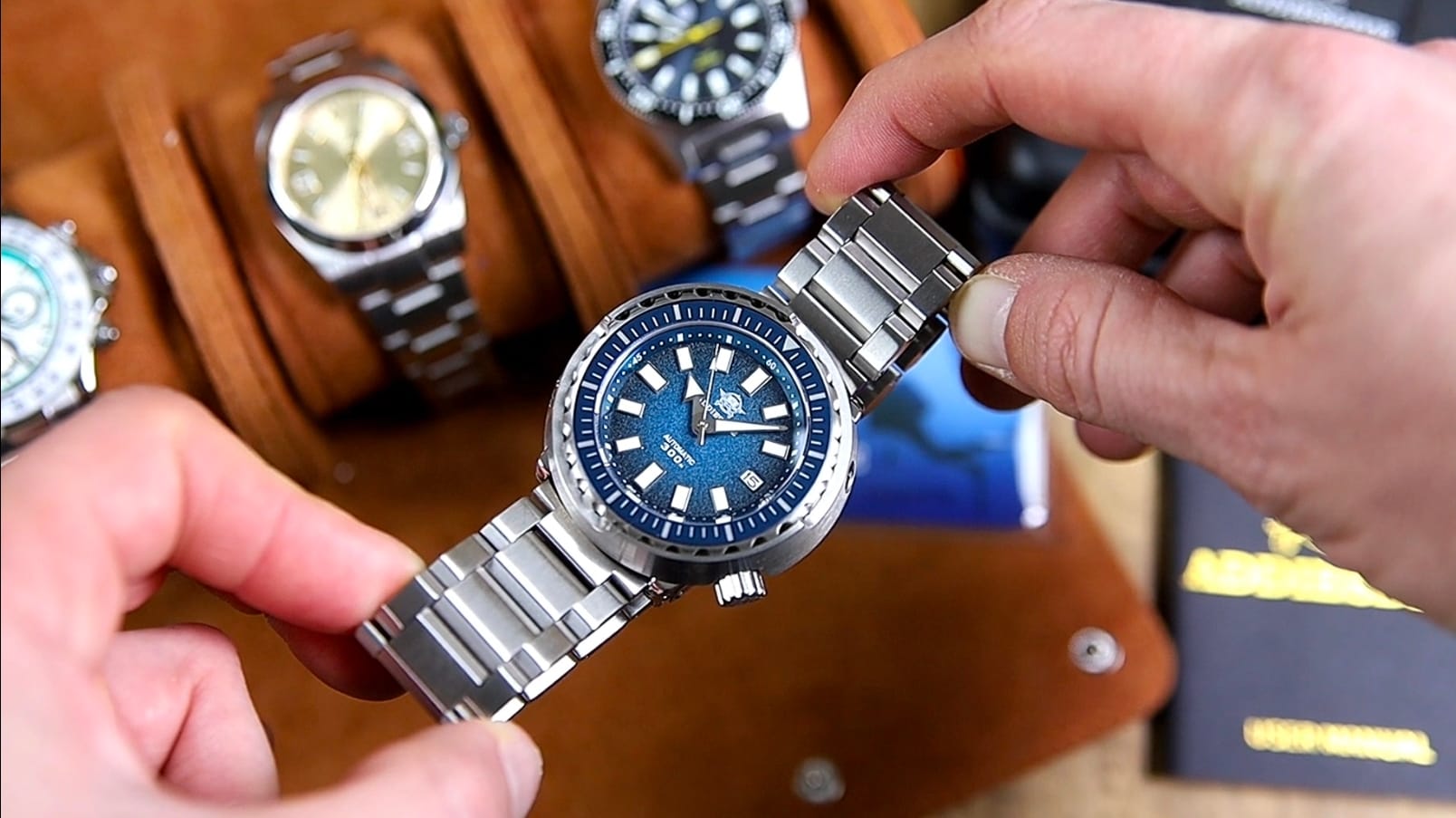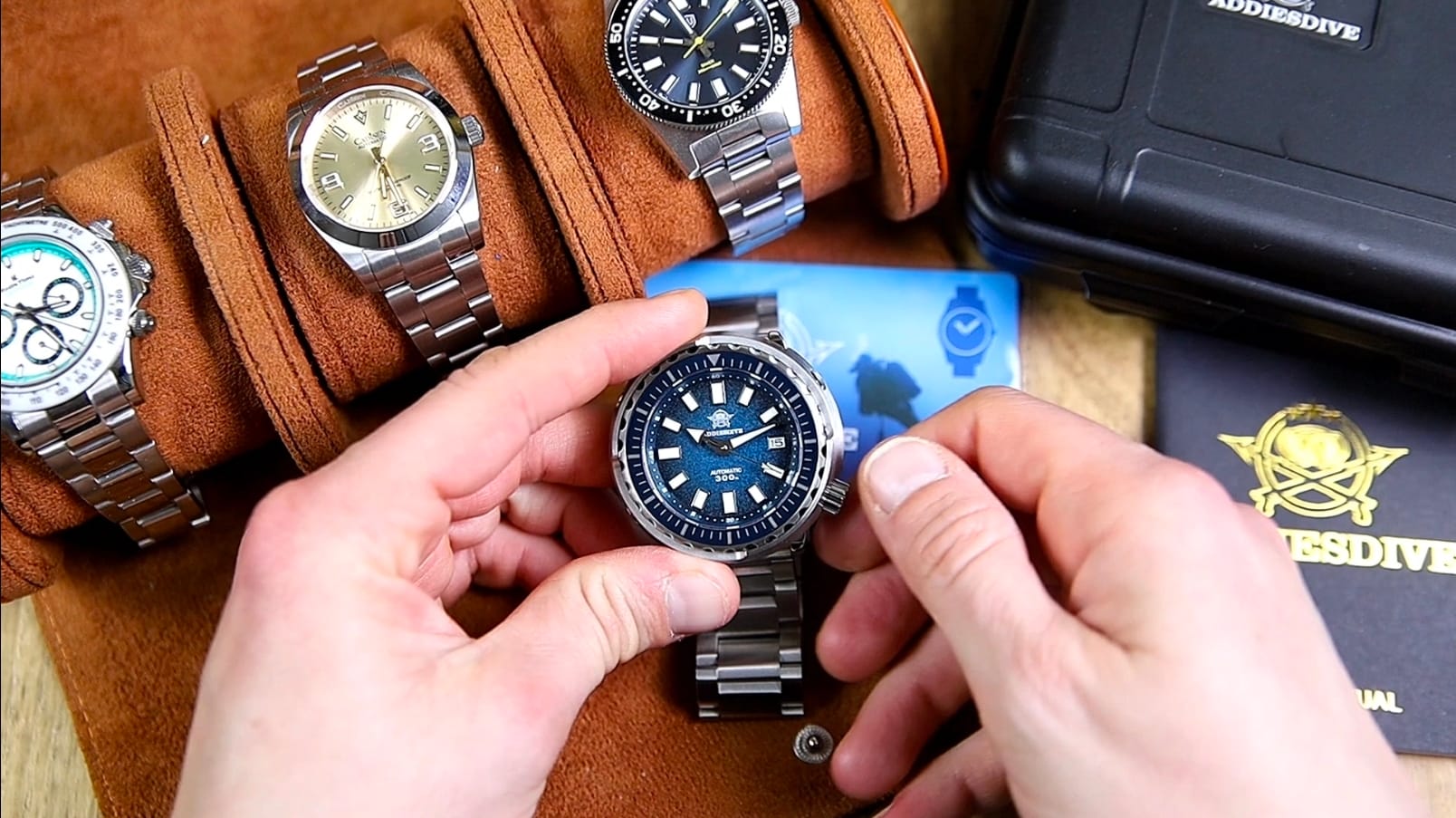 However, the watch is not without compromises. The absence of lume on the bezel limits functionality, and the bracelet construction—particularly the push pins and pressed clasp wing—feels less robust than the watch head itself. Ultimately, the AD2090 is a distinctive and visually striking diver-style watch that will appeal most strongly to collectors who specifically appreciate the shrouded Tuna aesthetic. If you’ve enjoyed this piece, you may also want to explore Addiesdive’s broader lineup, particularly their other dive-focused releases.