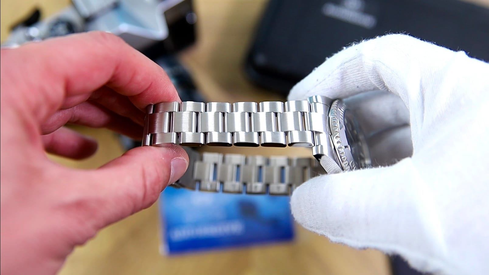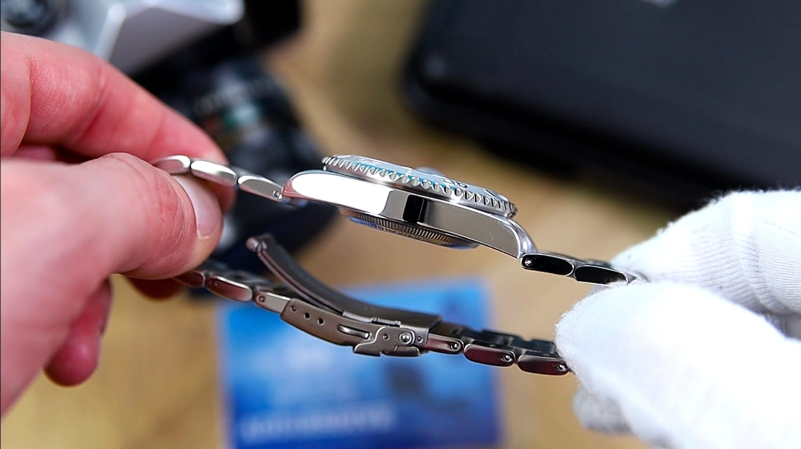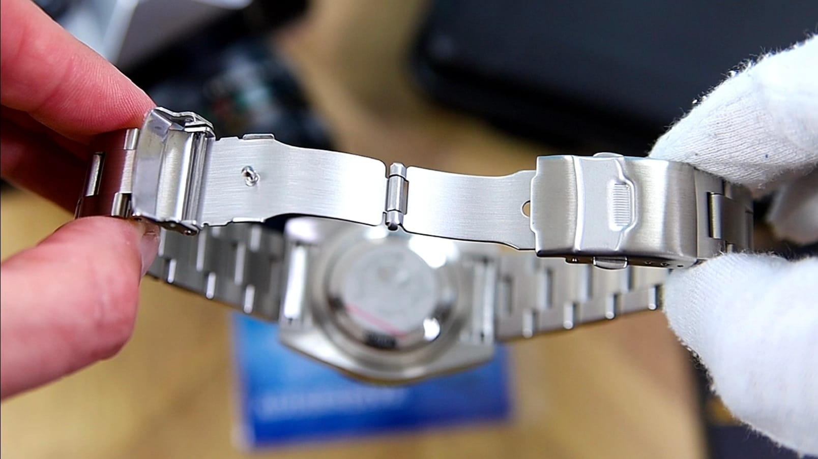 Yes, the male end links push the effective lug-to-lug out to 53.6 mm, but because the links break downward quickly, the bracelet still hugs the wrist well. The clasp is straightforward and secure, using a double-pusher release with three micro-adjustment positions. Inside, you’ll find a pressed folding wing—nothing exotic, but entirely functional and comparable to clasps found on watches costing two to three times as much.