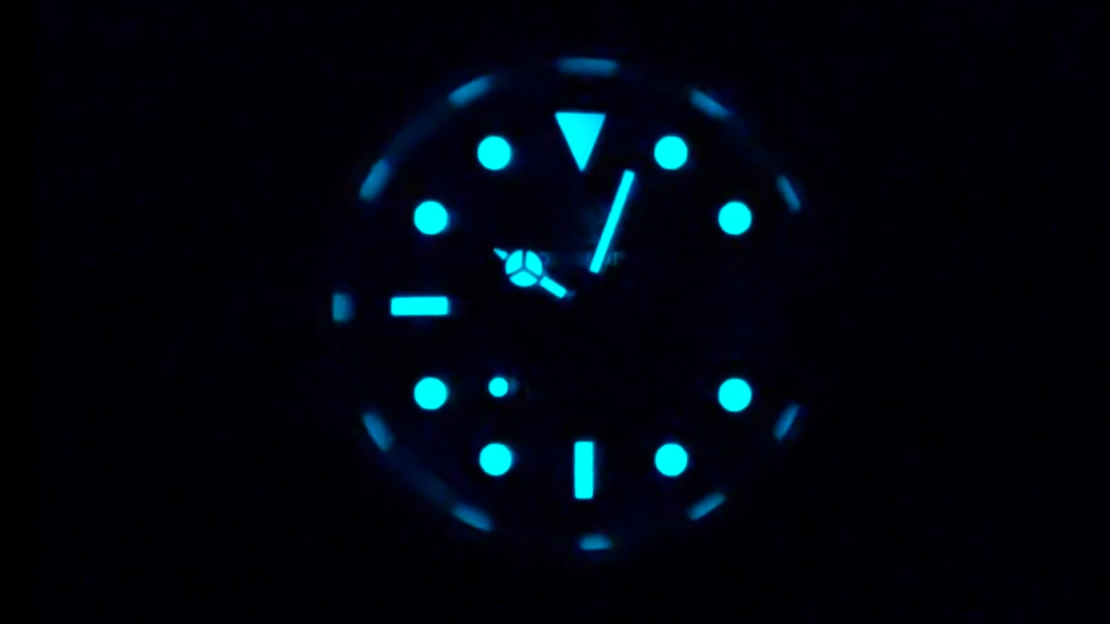 Text is minimal—brand crest and name at 12, and Diver 200 m above six—keeping the dial uncluttered and purposeful. Lume is BGW9, delivering a bright, cool blue glow on hands and markers with good persistence. In context, it’s standout performance: for $30, the lume here outshines that of many watches north of $100.