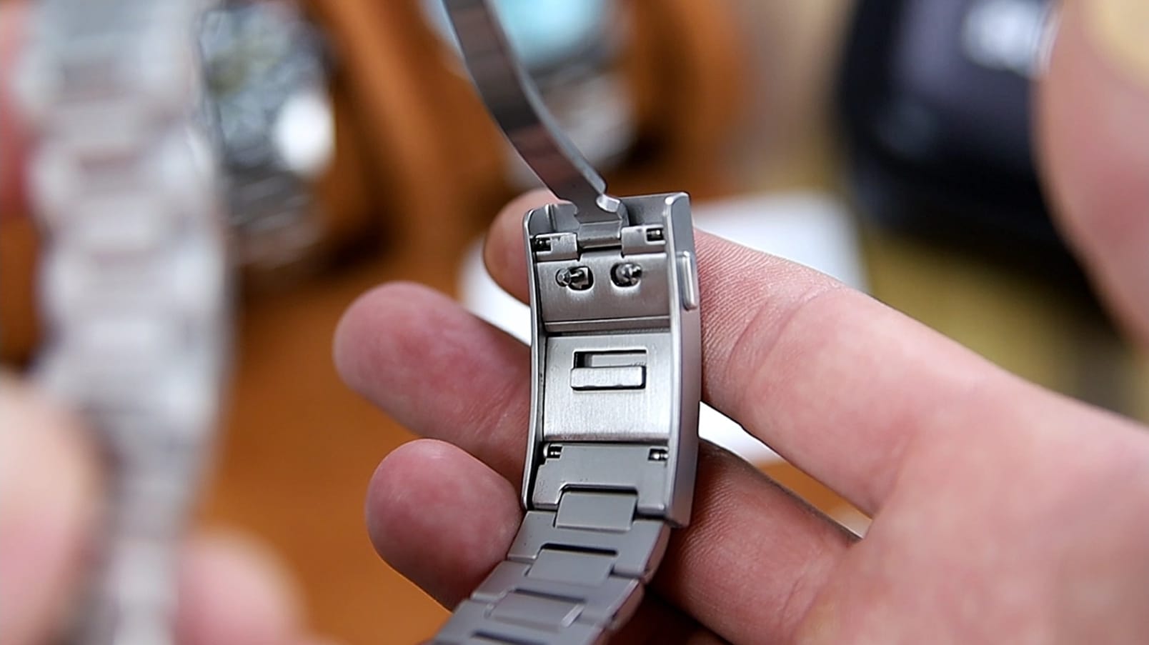 Construction is screw-pin throughout, tolerances are tight, and articulation feels smooth and natural. There’s minimal stretch and no rough edges. The milled clasp features beveled sides, twin pushers, a milled folding wing, and the standout feature — on-the-fly micro-adjustment, allowing instant sizing without tools. It’s robust, functional, and consistent with the utilitarian character of the watch.