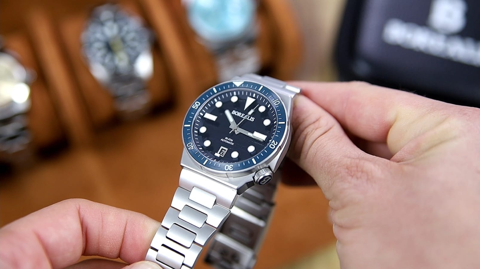 Setting time feels direct and assured — a reflection of the movement’s reputation for accuracy and clean engineering. The 6.8 mm crown itself operates with notable precision: unscrew, adjust, and re-secure, and the minute hand stays locked in place where you left it. It’s a well-executed interface that reinforces Borealis’s focus on reliability.