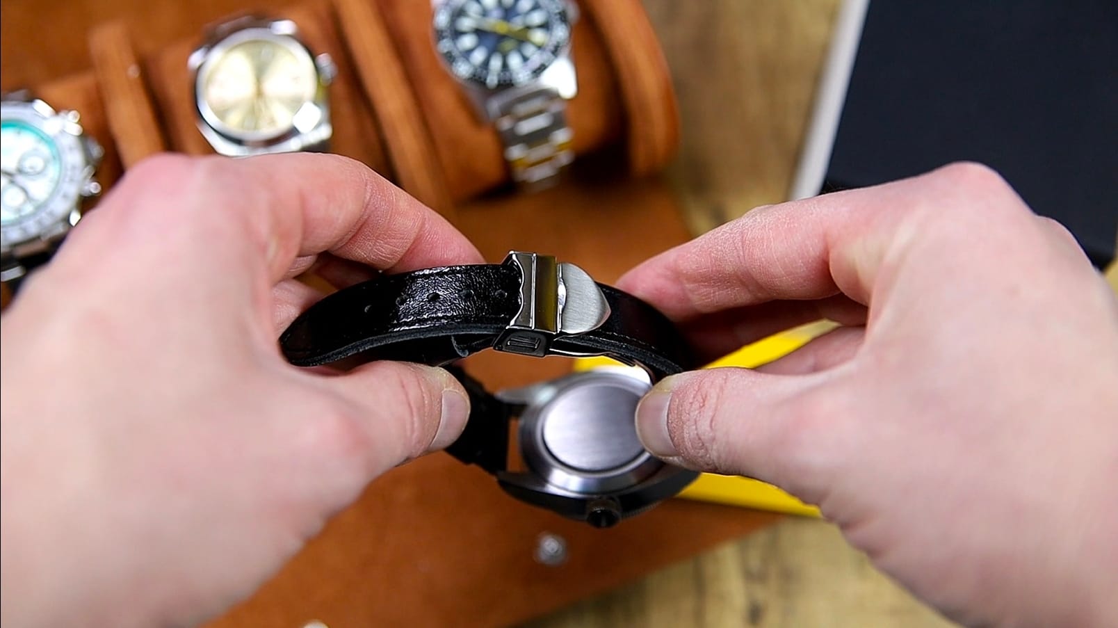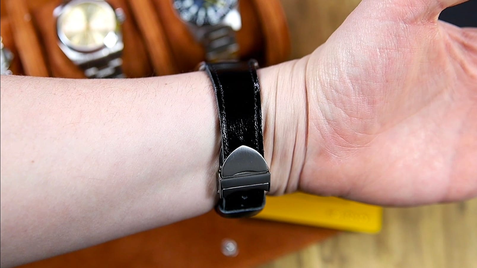 What elevates the experience is the clasp. The strap is fitted with a solid, milled butterfly deployment clasp featuring a milled folding wing, which feels notably premium for the price point. The clasp holds the strap securely and sits comfortably on the wrist.