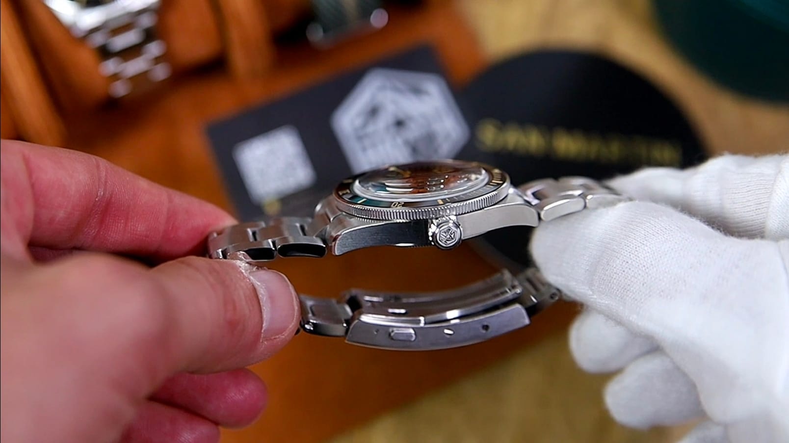 At the clasp, San Martin sets a new standard for AliExpress divers: a fully milled, signed clasp with on-the-fly micro-adjustment. A simple internal slider mechanism lets you fine-tune the fit instantly — no tools needed, no awkward trial and error.