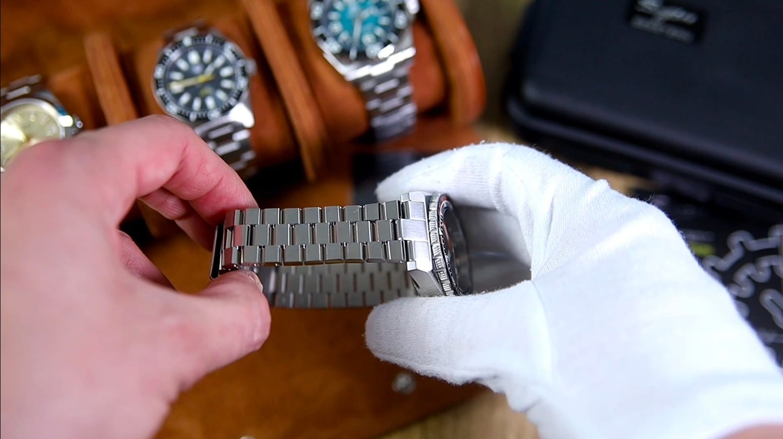 Build is straightforward: push pins rather than screws, with tolerances that show minor gaps on close inspection. Still, articulation is smooth, and wearability is strong across a range of wrist sizes. The bracelet tapers from 20 mm at the lugs to 18 mm at the clasp.