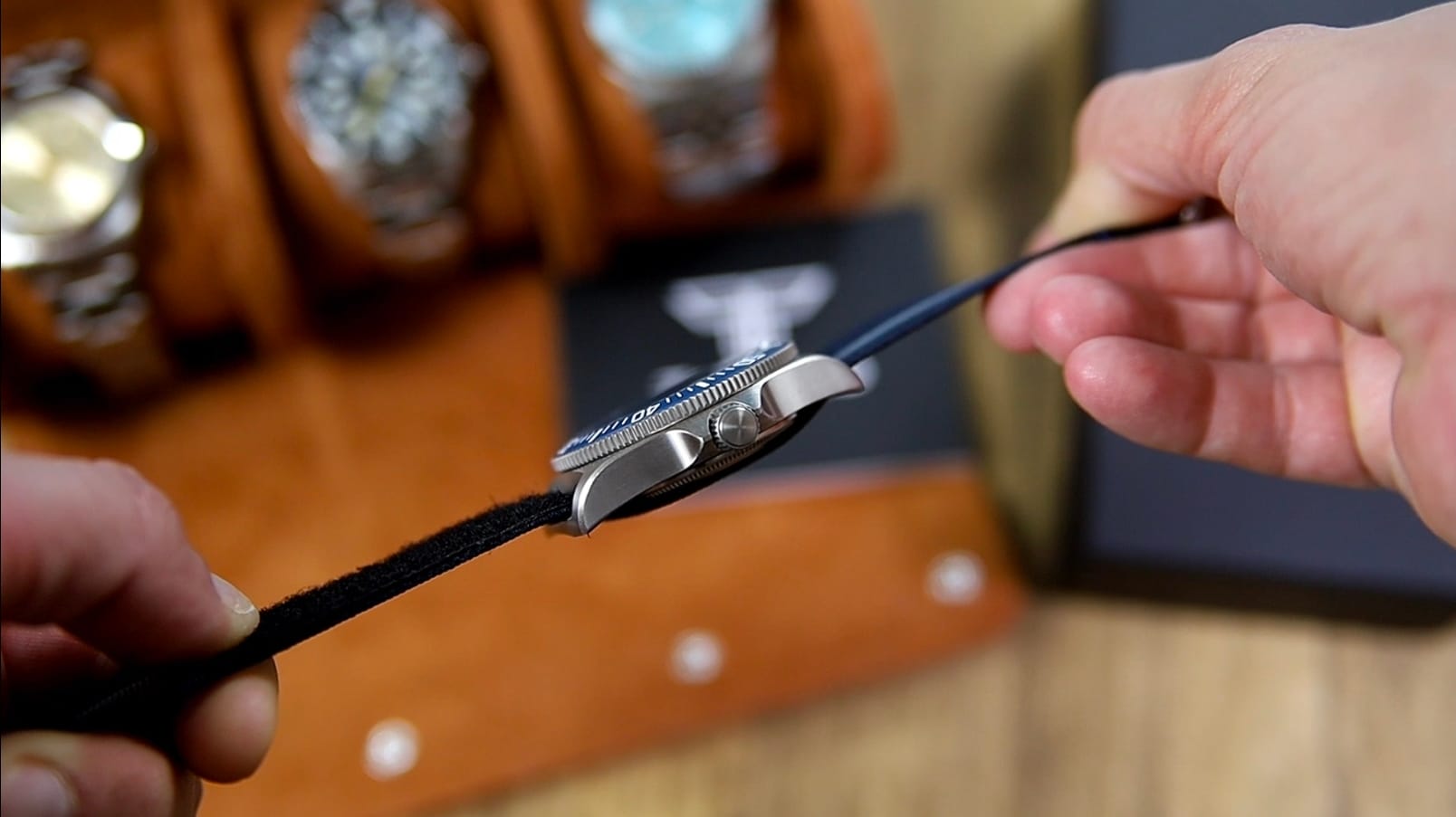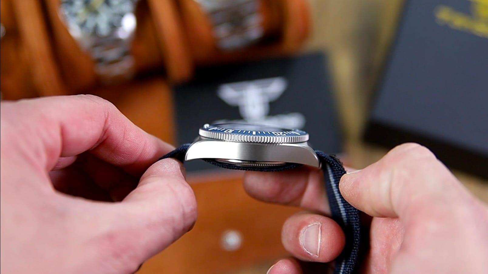 There is no bracelet option for the FXD, by design. Fixed strap bars dictate the use of one-piece pass-through straps, reinforcing the watch’s military DNA. The included nylon strap with Velcro hardware suits the watch well, keeping overall weight low while providing secure, adjustable fit.