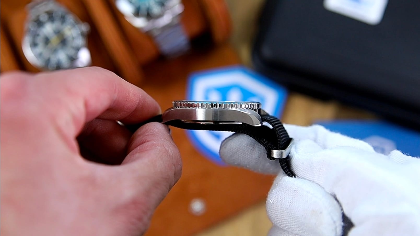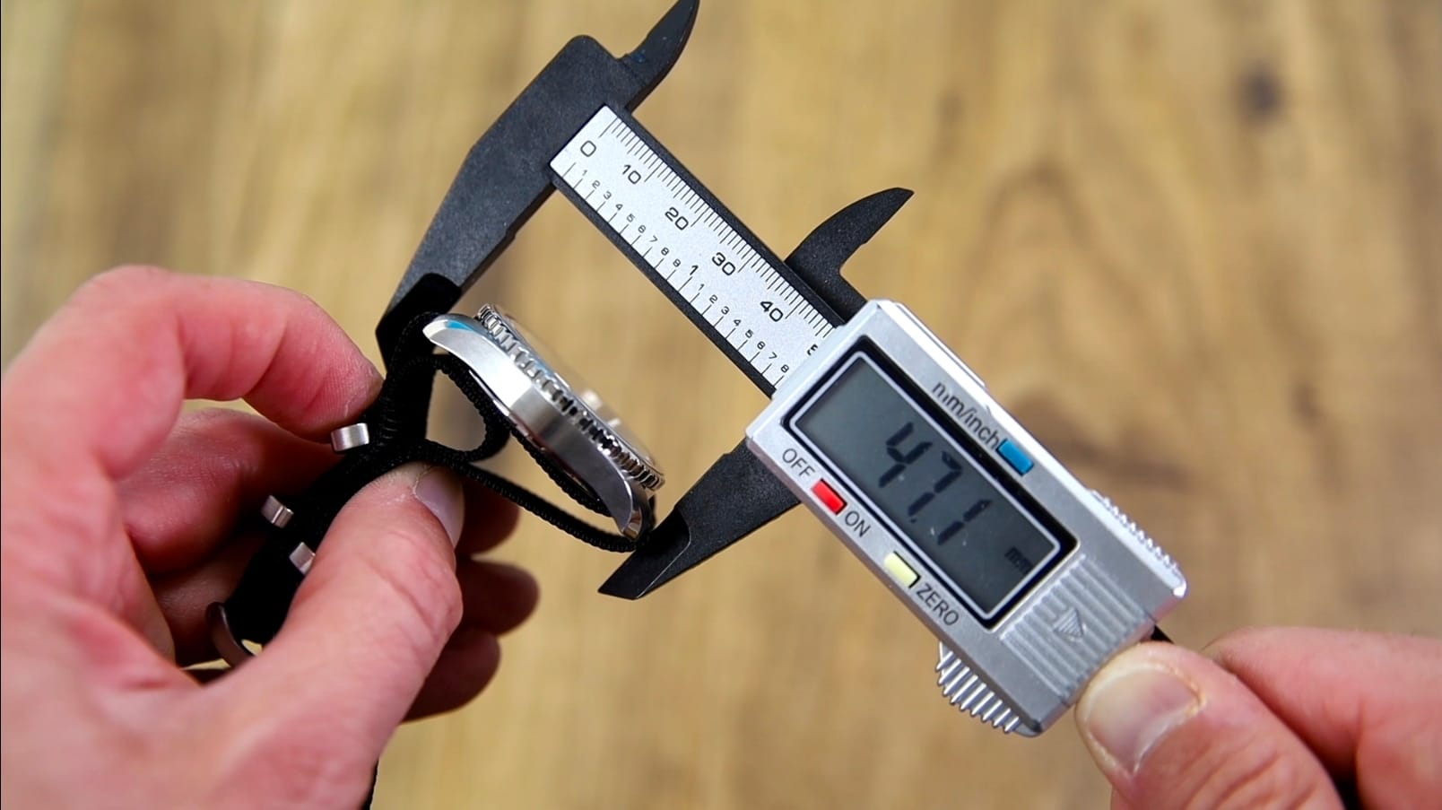 Although the listing advertises a 39 mm case, real-world measurements show a 40.2 mm diameter, paired with 9.7 mm thickness, 20 mm lugs, and a 47.1 mm lug-to-lug. It’s compact for a military-leaning diver and sits close to the wrist due to the slim profile.