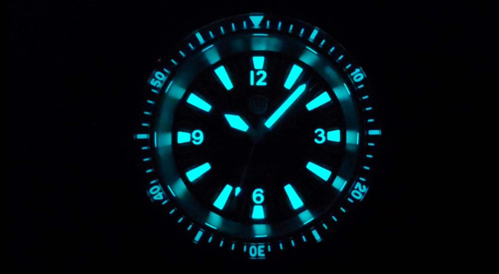 Lume is applied to both the dial markings and the full bezel scale. The glow is bright blue, evenly distributed, and holds its intensity for an extended period. The bezel pip and numerals charge quickly and remain visible alongside the hands and markers. Performance is solid and consistent with the brand’s reputation in the sub-$100 category.