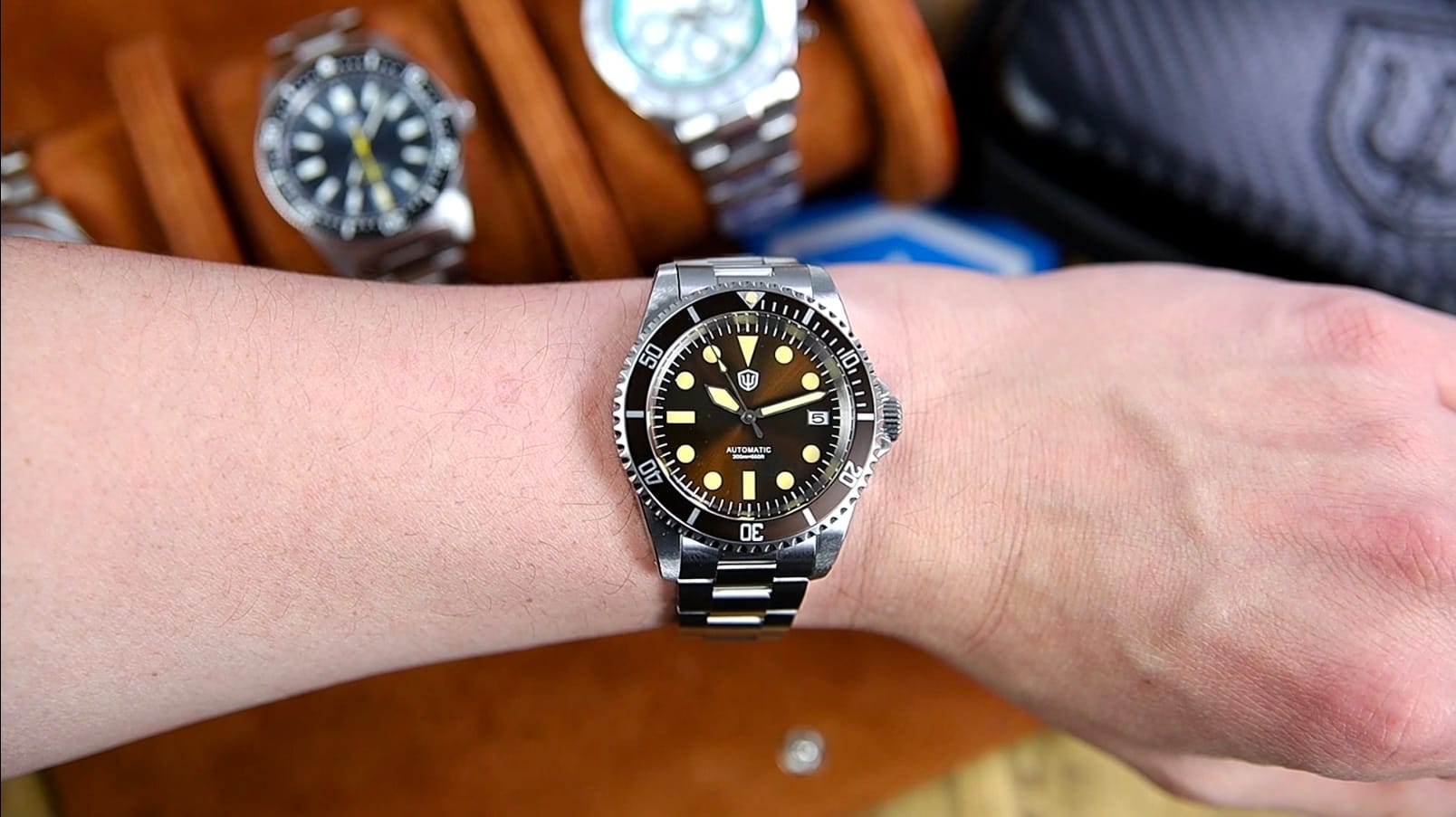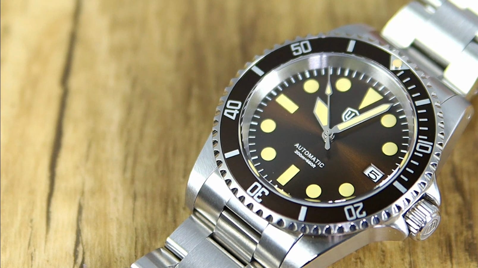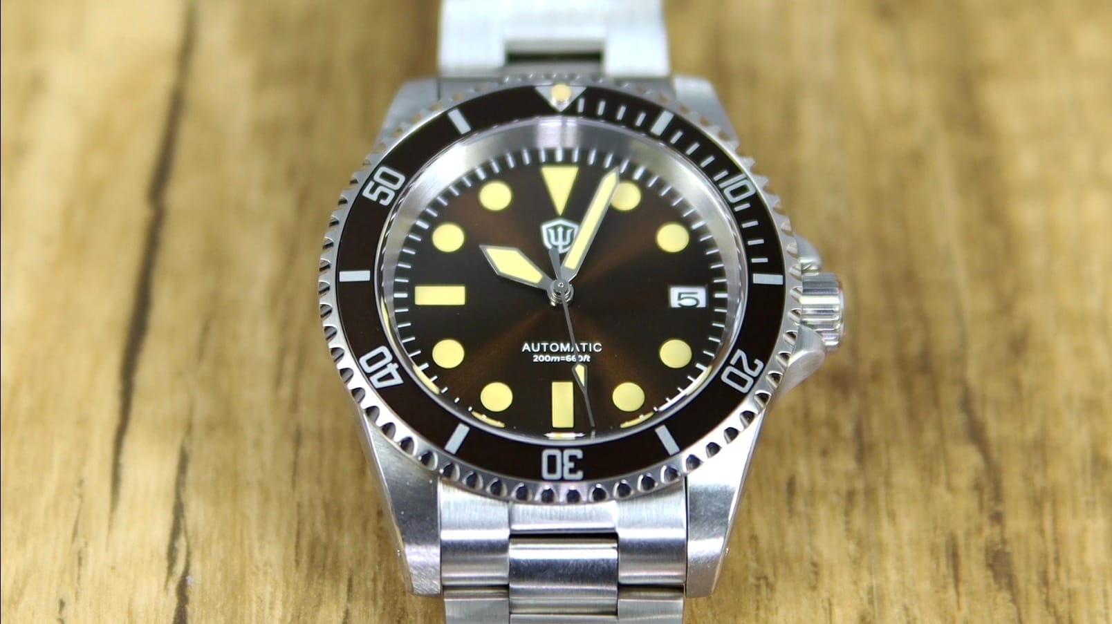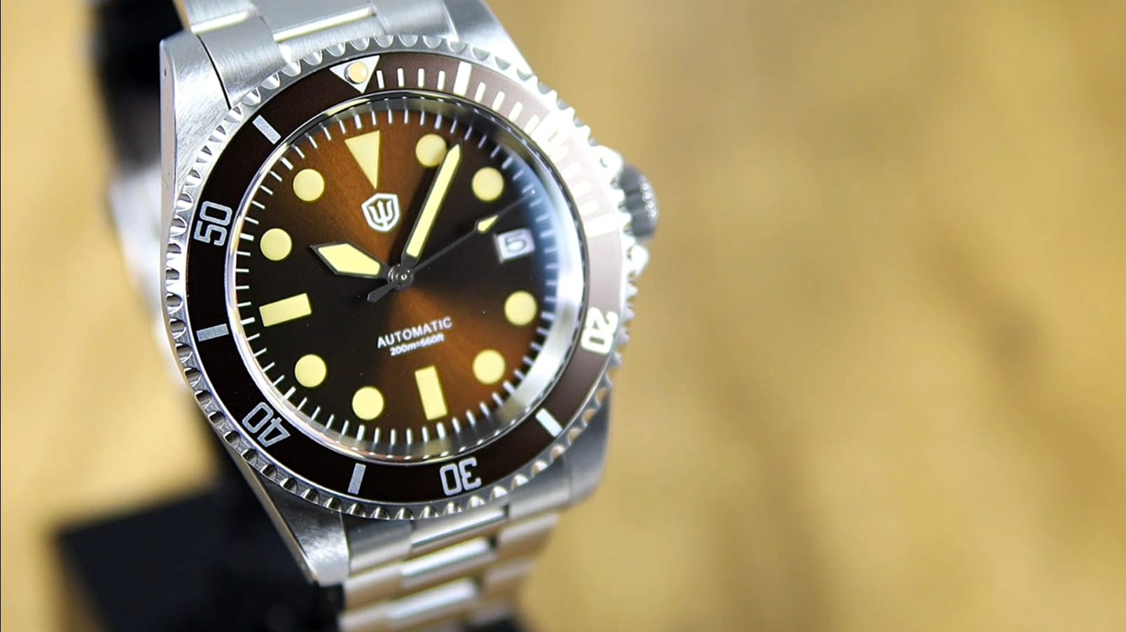 The Watchdives WD5513 offers a well-executed mix of modern materials and vintage cues. Its sapphire crystal, NH35 movement, and 200 m sealing make it competitive at around $190, while its warm brown palette and compact dimensions give it distinct character.