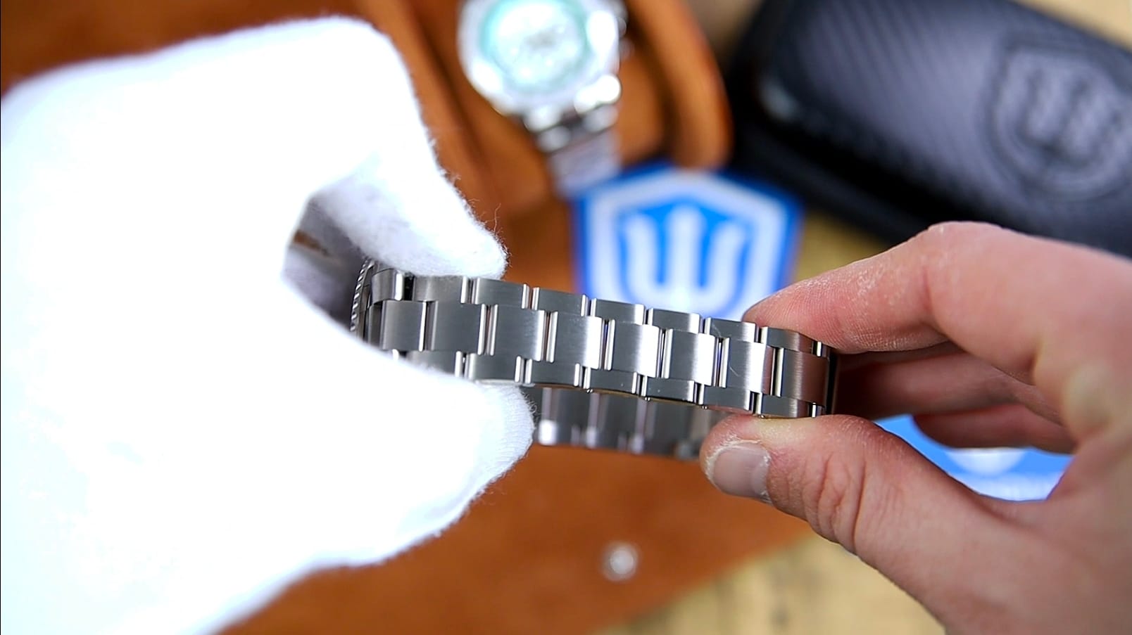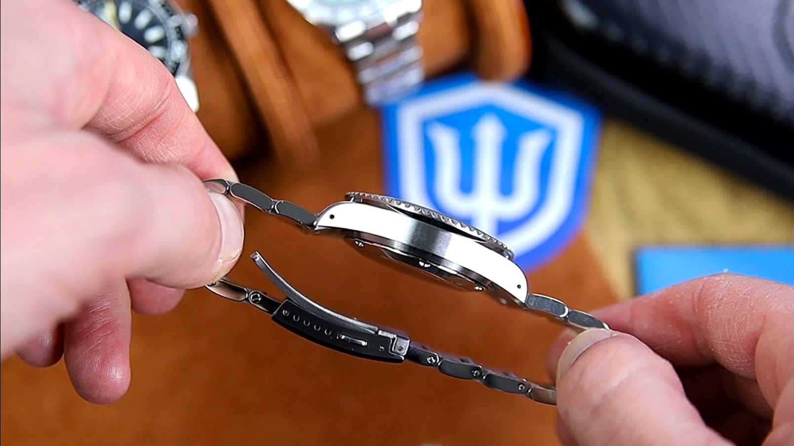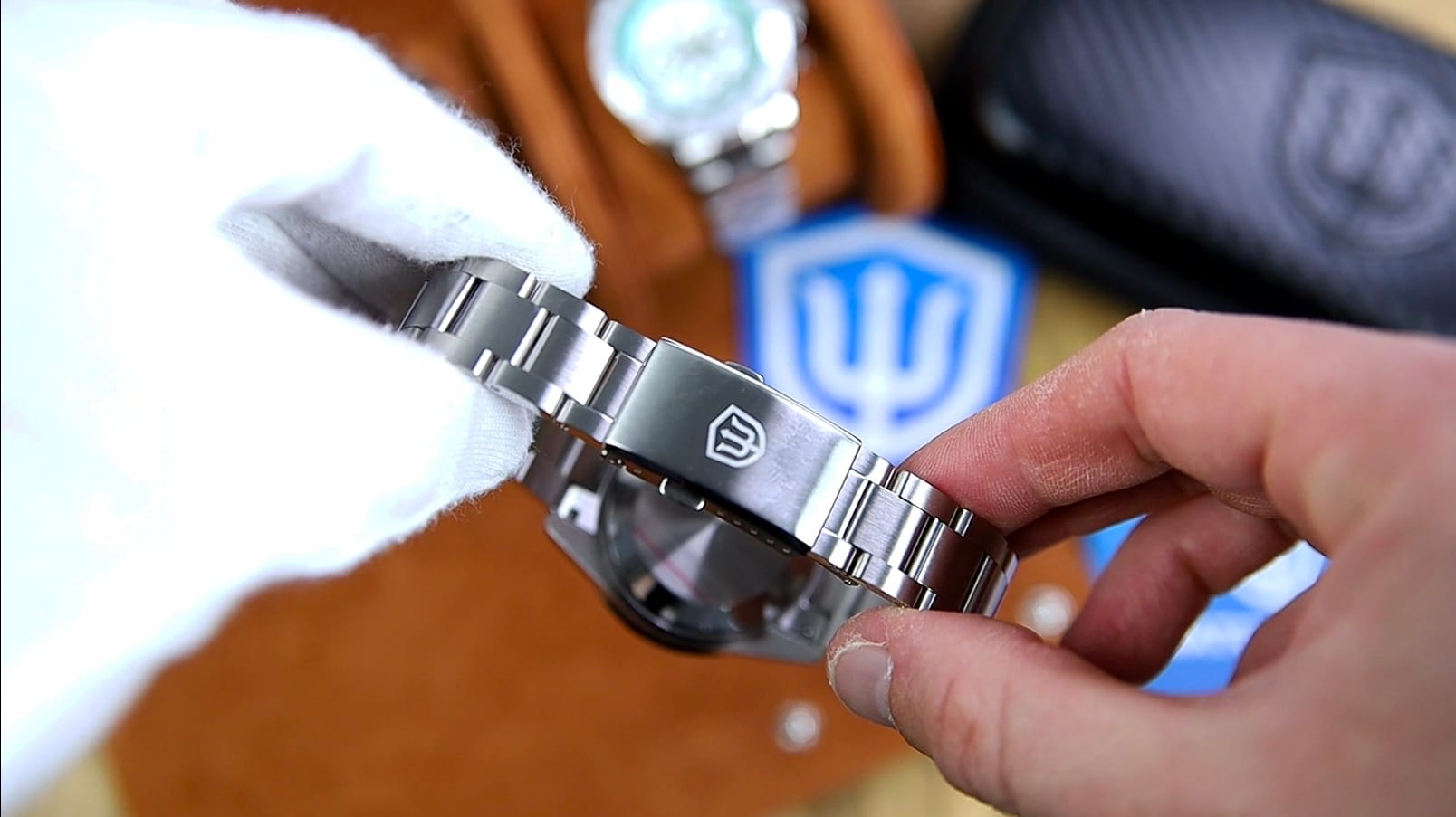 The clasp is a signed, milled, double-pusher folding clasp with five micro-adjustments. It’s functional and dependable, though the finishing on the clasp shell shows faint brushing inconsistency compared to the bracelet itself. The small polished chamfer across the top plate adds a bit of visual refinement without being flashy.