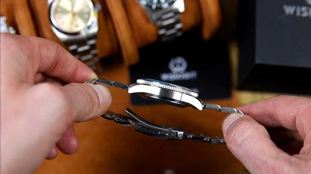 The clasp is a highlight. It’s a signed milled clasp with five micro-adjustment positions and a twin-pusher release. Inside, a milled folding wing adds structural solidity when closed. While the bracelet doesn’t elevate the watch, it doesn’t undermine it either—it performs exactly as expected for the category.