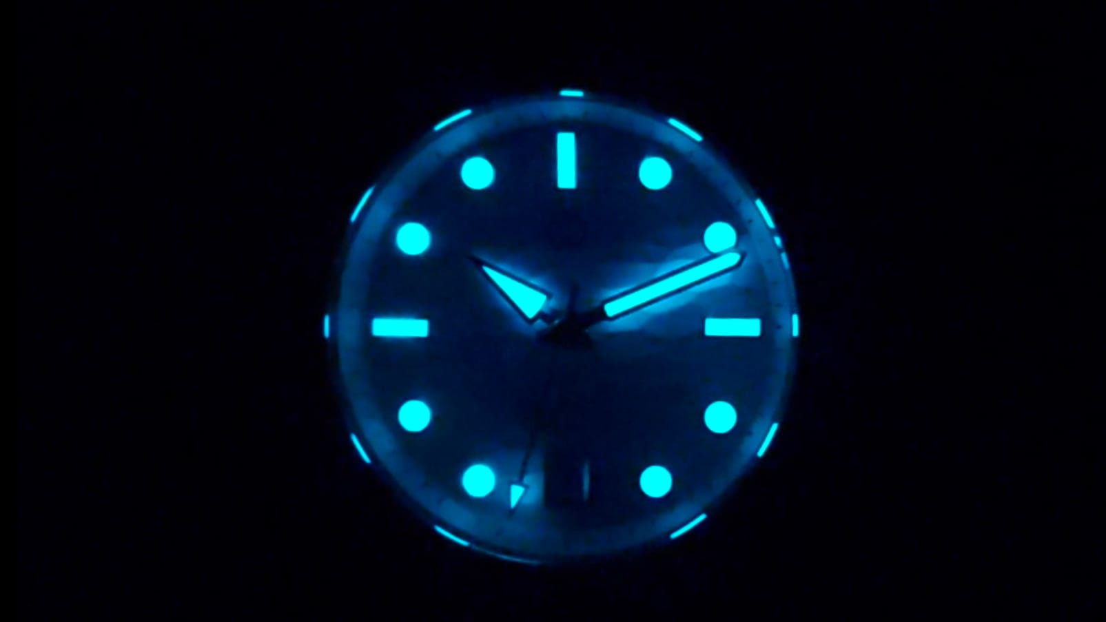 Lume performance is impressive. Bright blue lume fills the hands and indices, charging quickly and lasting longer than expected. However, the absence of any bezel lume remains a glaring inconsistency.