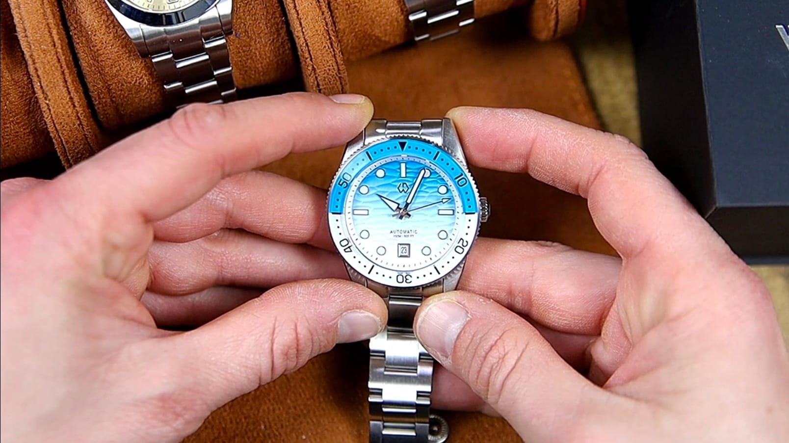 This is not a watch that aims to impress through ultra-tight tolerances or luxury-level finishing. Instead, it leans into fun—color play, surface texture, and a summer-ready aesthetic that immediately sets the tone. On the wrist, the watch feels balanced and composed, with proportions that work comfortably thanks to thoughtful case geometry. There are compromises, and they’re visible, but none are hidden. What the Wishdoit Ripple Dial offers is honesty: a solid, approachable diver that prioritizes dial impact and everyday wearability over technical perfection. This watch fits squarely into the modern diver watch segment, alongside others we’ve previously reviewed.