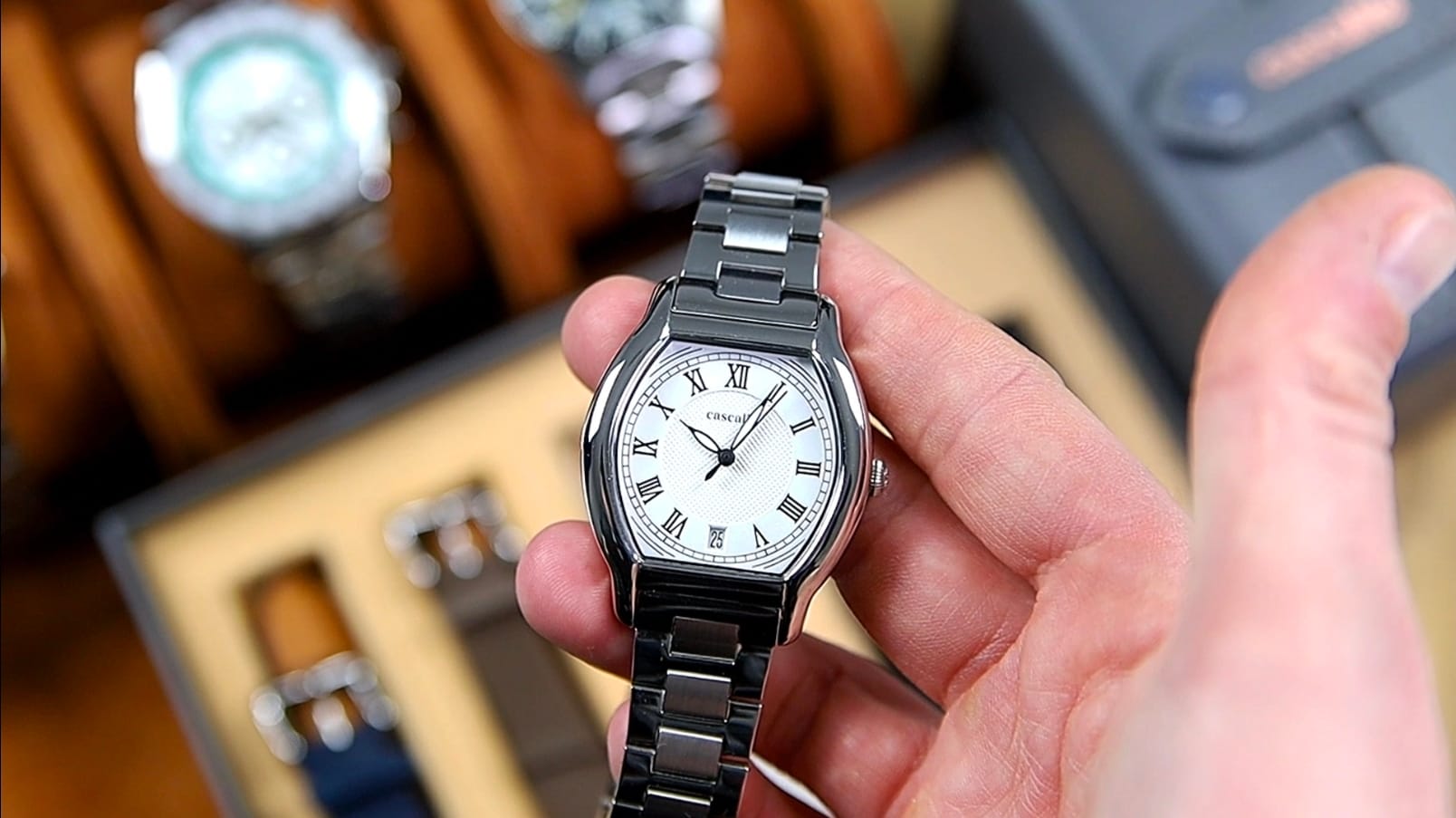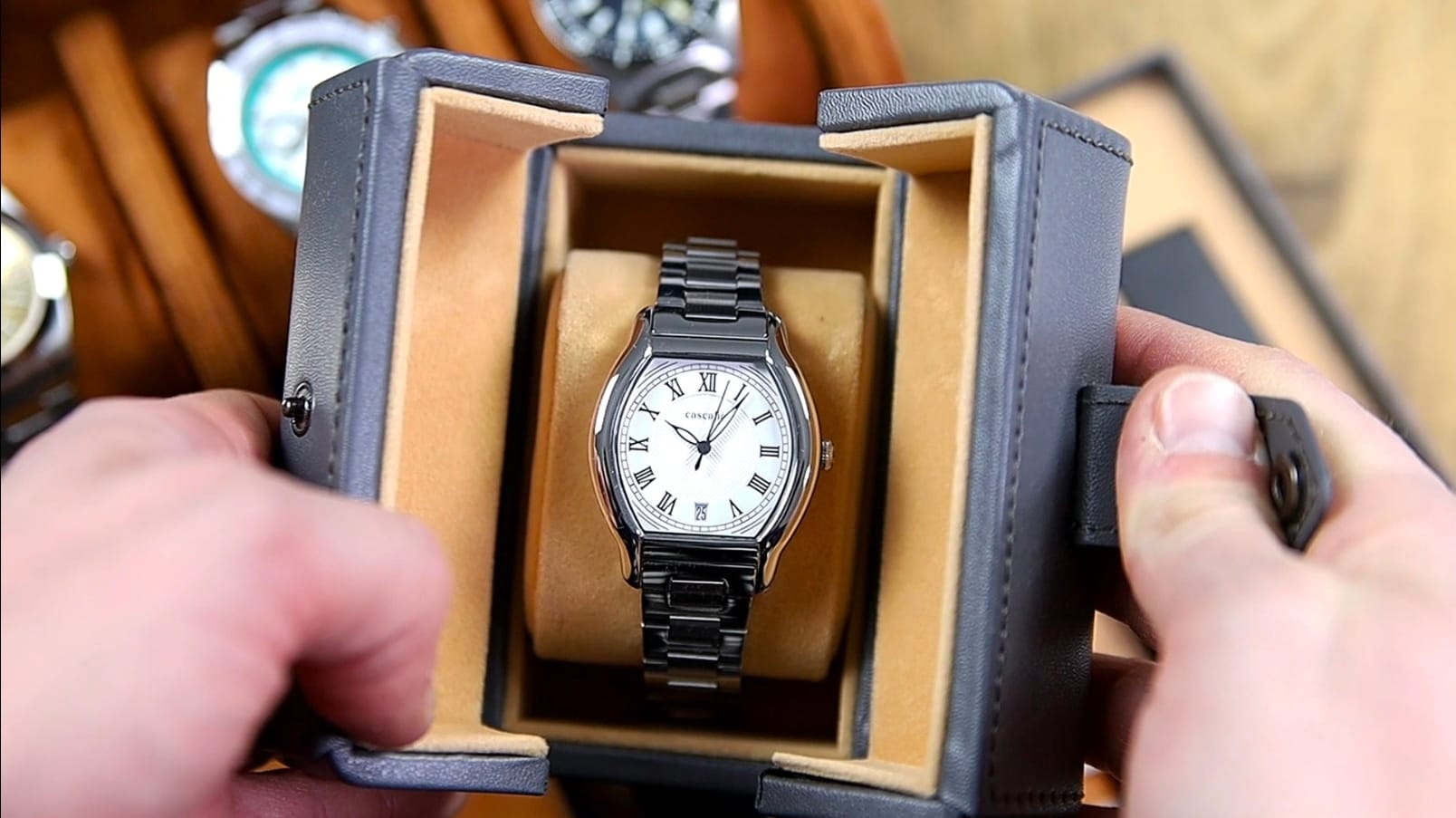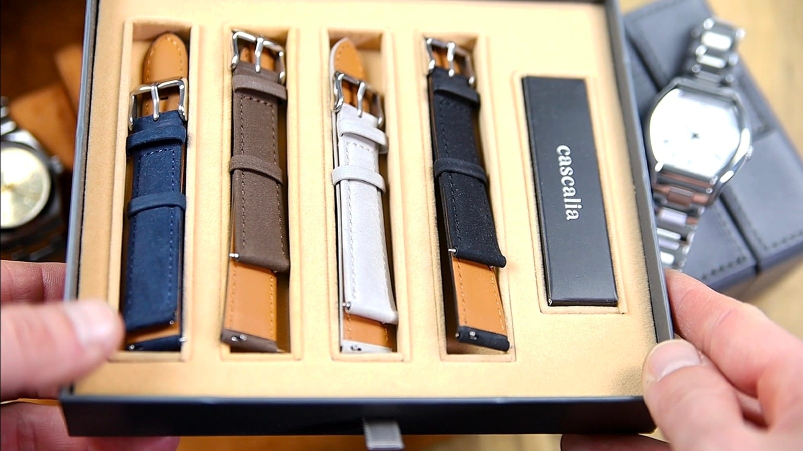 Beyond the watch itself, Cascalia includes a stainless steel bracelet, four Italian suede leather straps, and a dedicated leather travel case. The Caratello is clearly designed as a cohesive package rather than a single object. On paper, the specifications suggest restraint. In hand, the emphasis shifts toward proportion, curvature, and versatility. Readers familiar with Cascalia Watches will recognize many of the design cues also seen in their previous models.