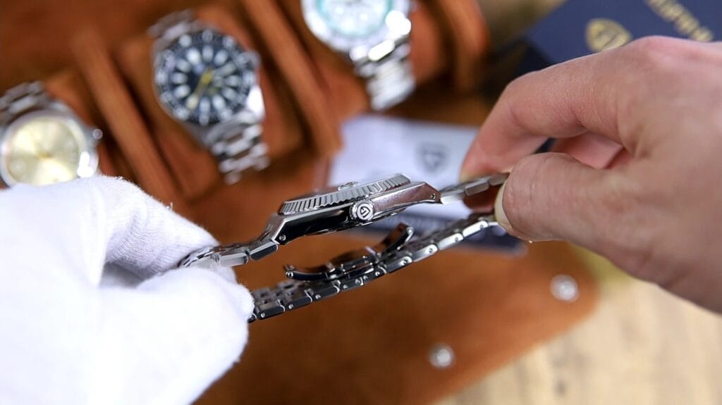 Links are push-pin-secured, with a 7.8 mm link length that helps fine-tune fit despite the absence of half links. The signed butterfly clasp looks elegant, though adjustment requires patience. There’s slight stretch—not luxury-grade tolerance—but articulation is excellent. The bracelet flows naturally over the wrist, free from the stiffness once common in older Pagani designs.