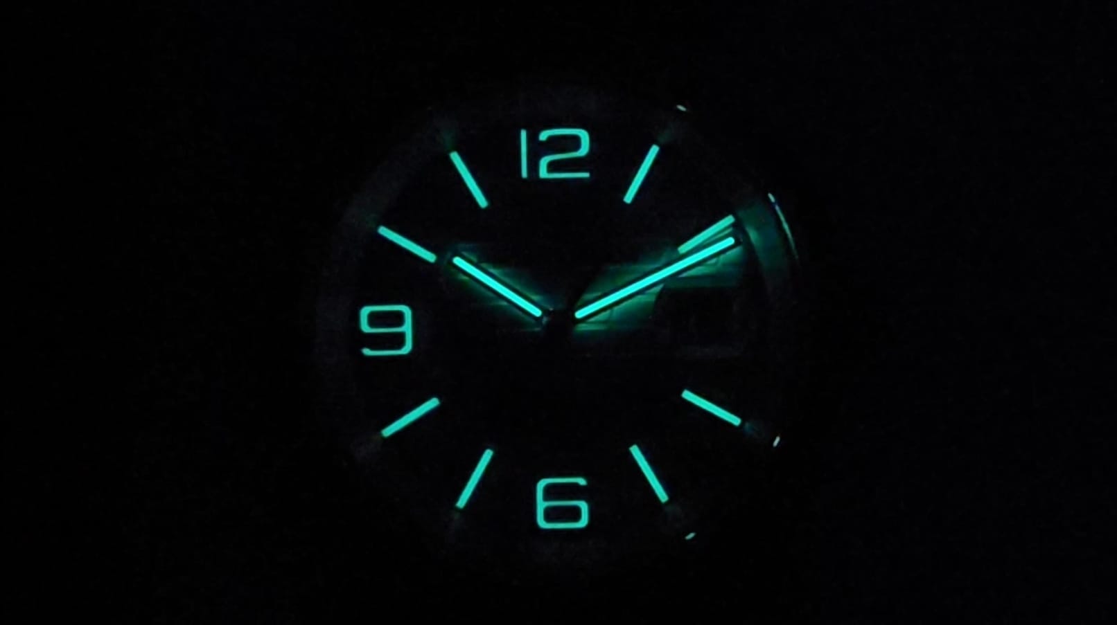 In low light, the blue lume performs impressively for the sub-$100 class: bright, evenly applied, and quick to charge. You can compare this bright lume to other dress watches.