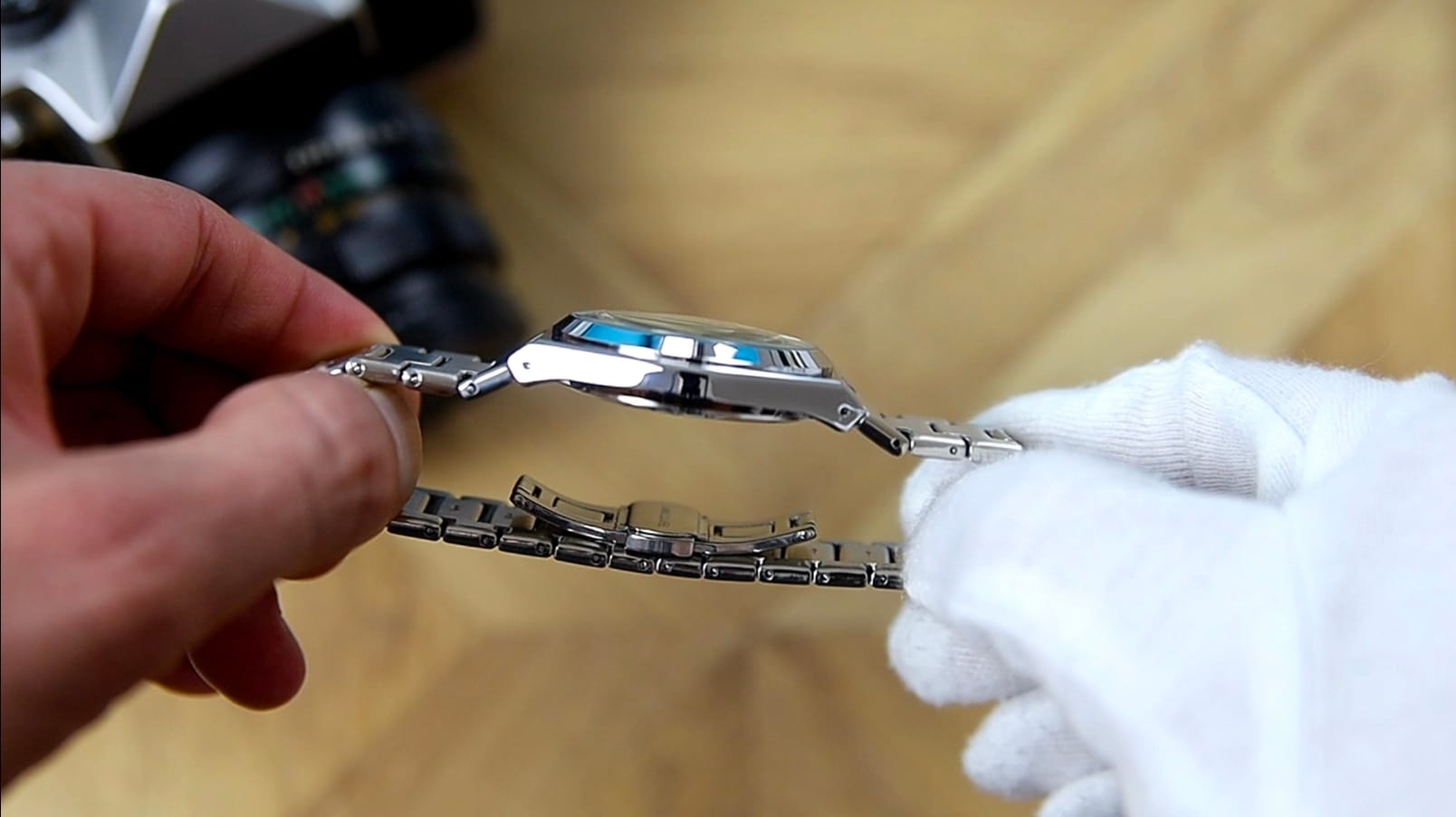 Tolerances show minor gaps under close inspection, but link articulation is smoother than expected for the price, and the combination of brushed links and polished case surfaces creates enough contrast to maintain visual coherence.