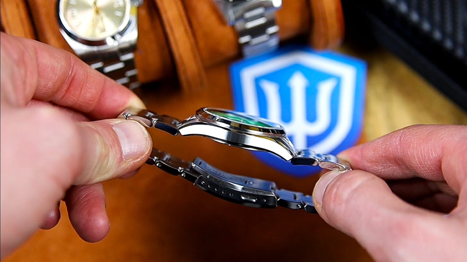 The clasp is a signed, fully milled double-pusher unit with five micro-adjustment positions and a milled folding wing inside . It is practical and easy to size, fitting the watch’s dress-sport positioning.