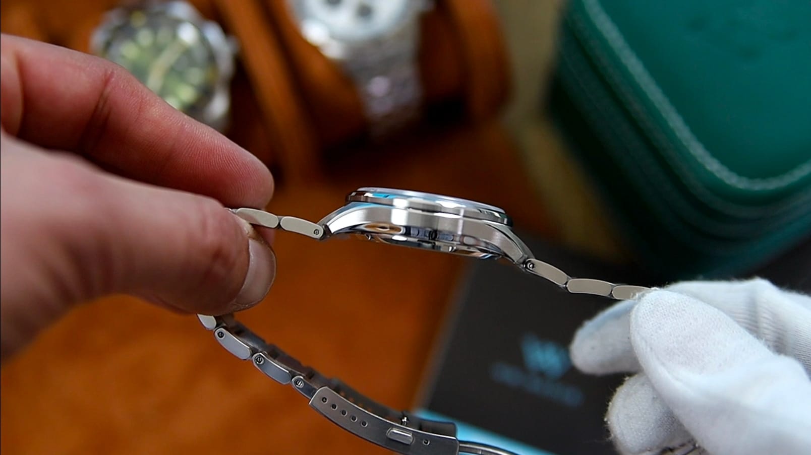 The WM226 approaches the sports-lux format with an emphasis on surface finishing and a dial-forward design language. Its proportions remain manageable despite the extended end-link span, and the combination of brushed steel, clean geometry, and a double-domed sapphire crystal keeps the watch grounded in everyday usability.