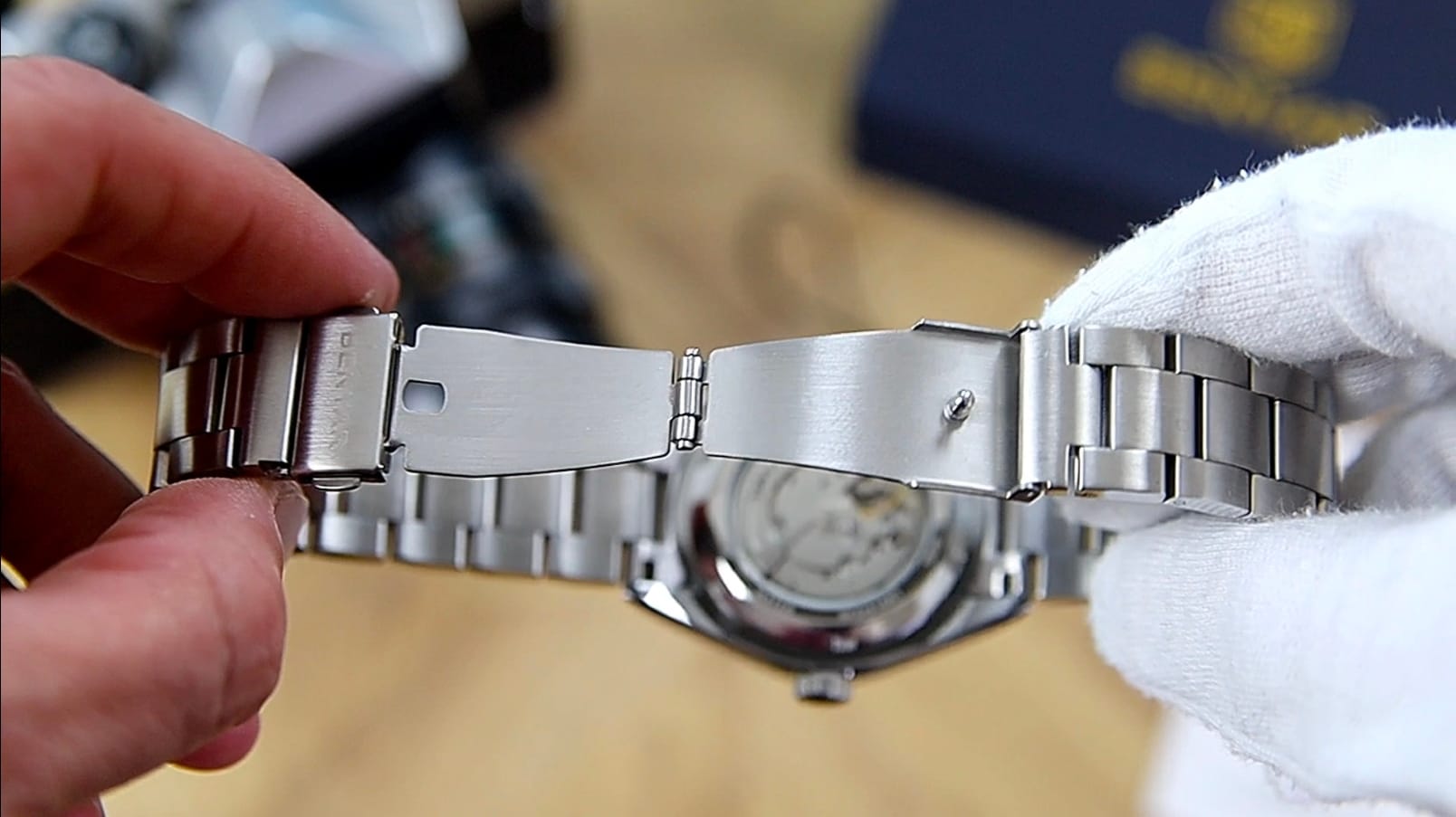 The clasp features a double push-button release and is signed, a detail rarely seen at this price. Inside, the clasp uses a pressed folding wing rather than a fully milled construction. While not luxurious, it is functional and preferable to a butterfly clasp for daily use. Overall, the bracelet punches above its weight, contributing significantly to the watch’s wearability.