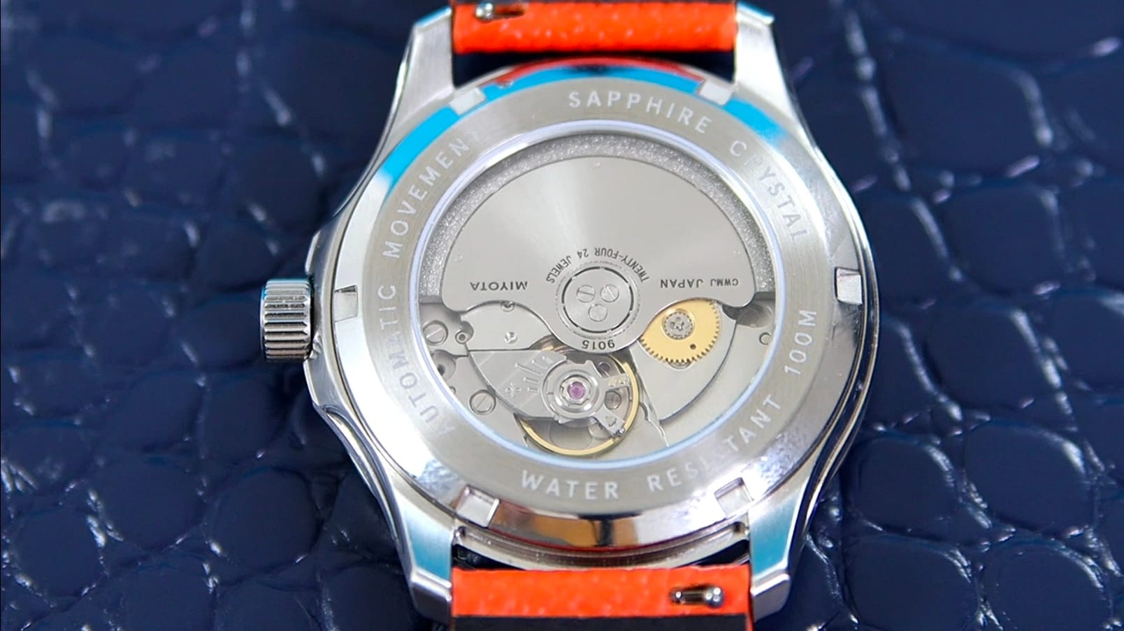 At the heart of the PX1742 is the Miyota 9015, a high-beat Japanese automatic movement widely respected in the microbrand space. It operates at 28,800 vibrations per hour, providing a smooth seconds-hand sweep. The movement features 24 jewels, a stated 42-hour power reserve, and an accuracy rating of −10 to +30 seconds per day.